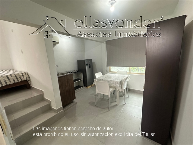 Departamento remodelado que consta de area con alacena, mesa desayunador, refrigerador, parrilla electrica, fregadero de cocina, baño completo, cuarto con dos camas y buro, tiene espacio afuera para estacionarse, entrada independiente, se encuentra en el segundo piso, cerca del tecnológico. INCLUYE servicios de agua y gas. La Luz NO esta Incluido en la Renta. (No se aceptan mascotas). *** Más Información al (81) 1522-7457, WhatsApp 81-8178-3375 ***