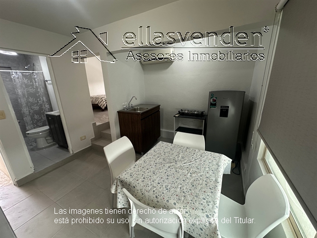 Departamento remodelado que consta de area con alacena, mesa desayunador, refrigerador, parrilla electrica, fregadero de cocina, baño completo, cuarto con dos camas y buro, tiene espacio afuera para estacionarse, entrada independiente, se encuentra en el segundo piso, cerca del tecnológico. INCLUYE servicios de agua y gas. La Luz NO esta Incluido en la Renta. (No se aceptan mascotas). *** Más Información al (81) 1522-7457, WhatsApp 81-8178-3375 ***