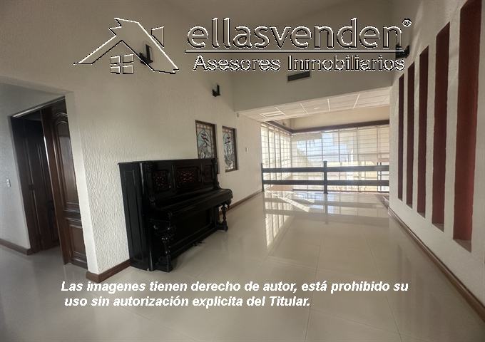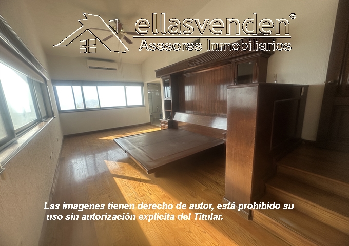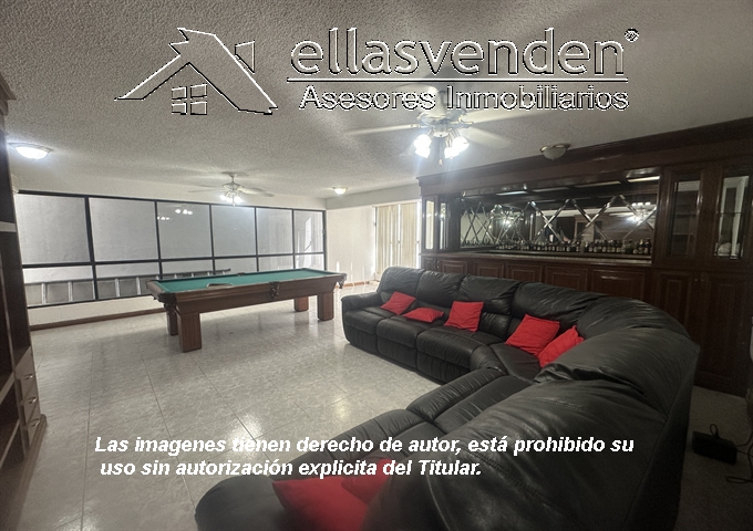 Residencia con cochera para 6 autos, recibidor, sala- comedor independientes con vista a jardÃn, cocina equipada con cubierta de granito, alacena, área de antecomedor, medio baño de visitas , amplia estancia, 4 recámaras la principal con jacuzzi, vestidor y baño privado, las otras 3 recámaras con baño privado y vestidor. Planta baja un sótano con área de juegos, bar equipado, mesa de billar y sala de piel en área de TV, comunica al amplio patio con jardÃn, tiene 4 bodegas y un clóset en cochera, cisterna de 15,000 Lts. Terraza y jardÃn con fuente delantero. *** Más Información al (81) 1522-7457, WhatsApp 81-8178-3375 ***